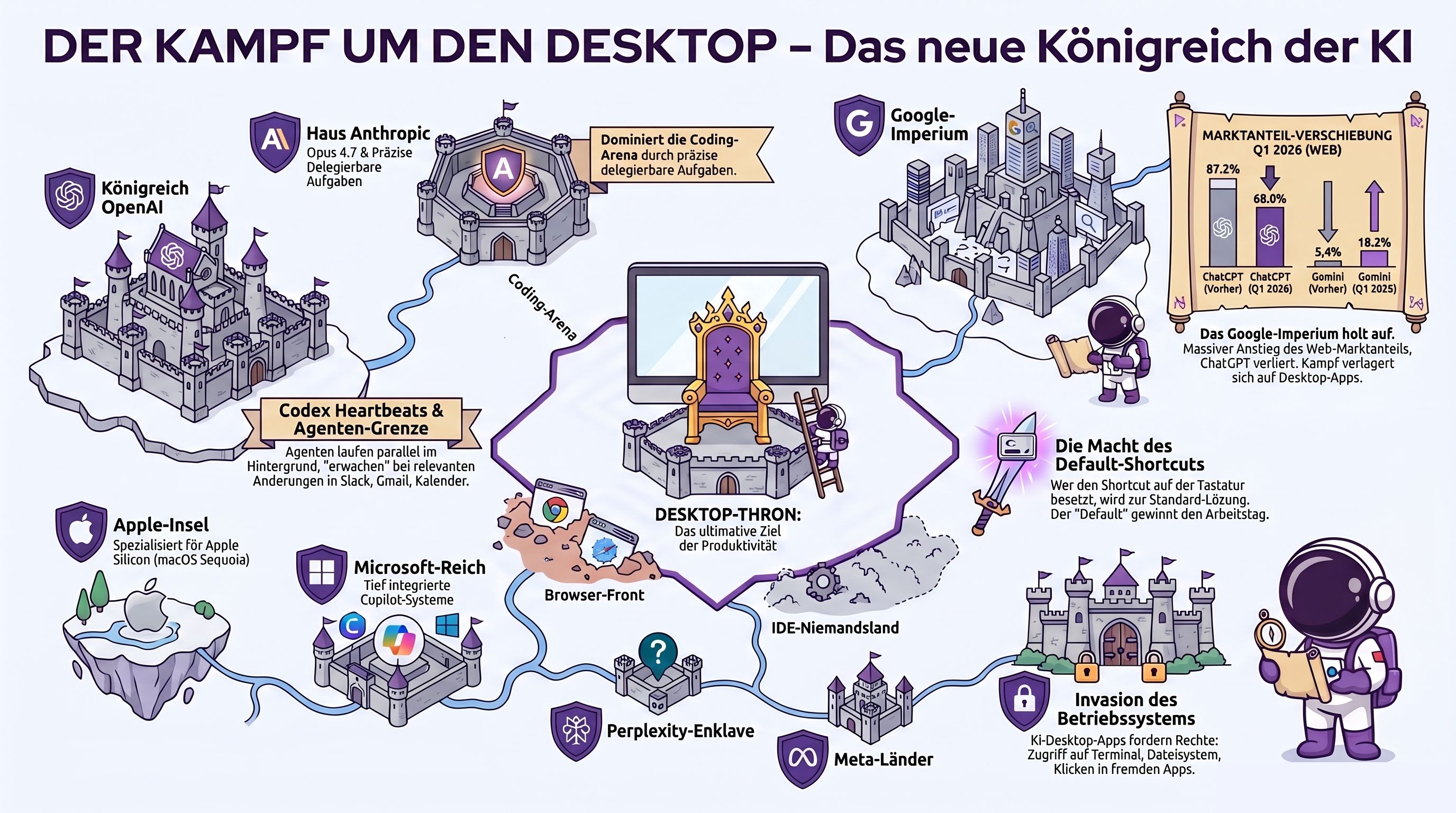 Unter dem Strich: Vier Labs, vier Desktop-Strategien, ein Ziel. Wer auf deinem Computer der natürliche Shortcut ist, wird zum Default für alles.