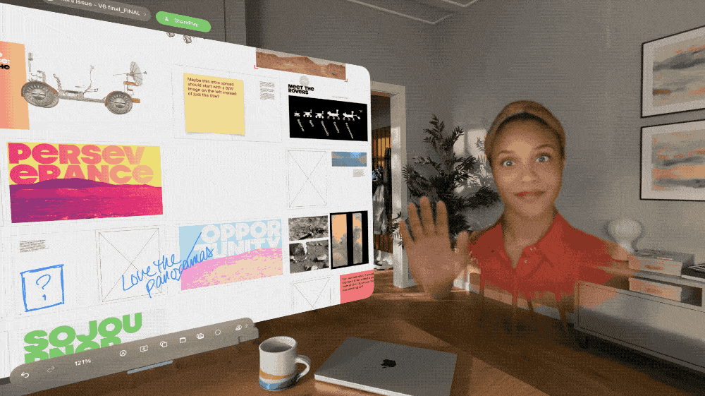Apple Vision Pro Personas können mit VisionOS 1.1 neu frei in anderen Apps herumschwirren. Diese „Spatial Personas“ vermitteln das Gefühl, gemeinsam mit anderen Nutzern im selben Raum zu sein.