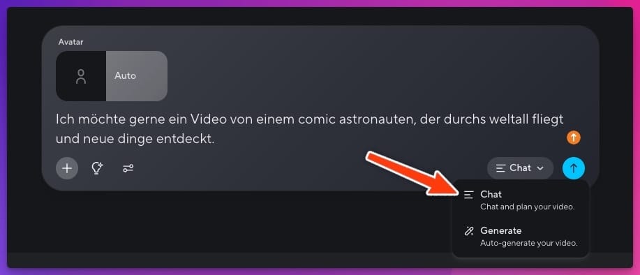 Schritt 1: Du beschreibst dein Video in natürlicher Sprache.