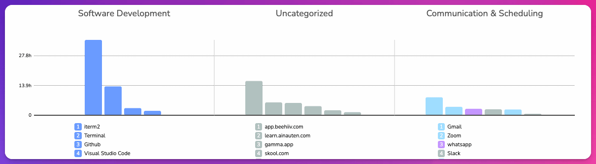 Wir haben in den letzten Wochen praktisch alles damit erledigt. 50 Stunden Claude Code, knappe 3 Stunden ChatGPT … die Zahlen lügen nicht.