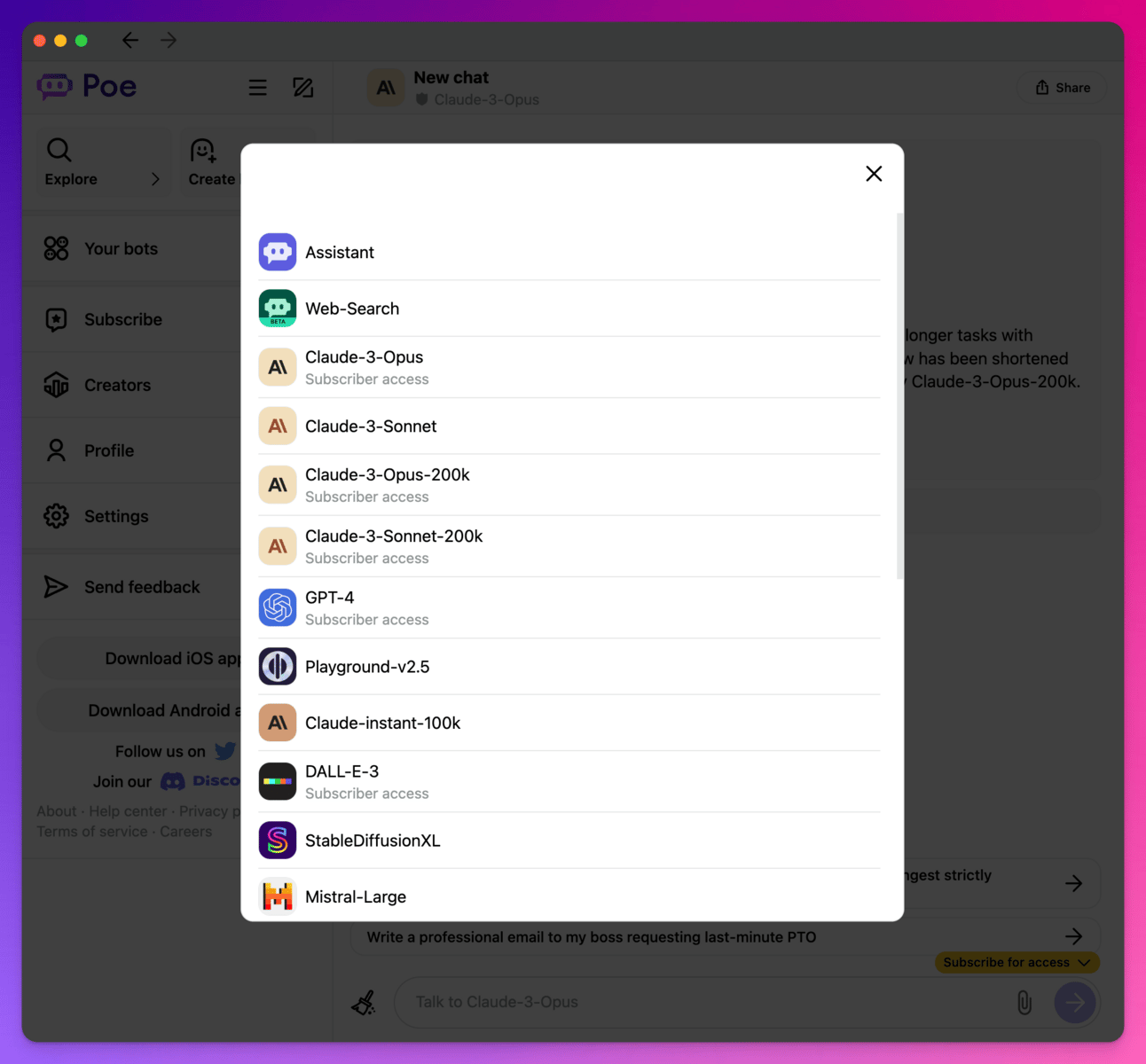 Wir haben auch Freunde, die bereits ihr ChatGPT Plus Abo gekündigt haben, und zu Poe gewechselt sind. Da für uns aber die GPTs von ChatGPT unabdingbar sind, tanzen wir aktuell noch auf mehreren Hochzeiten.