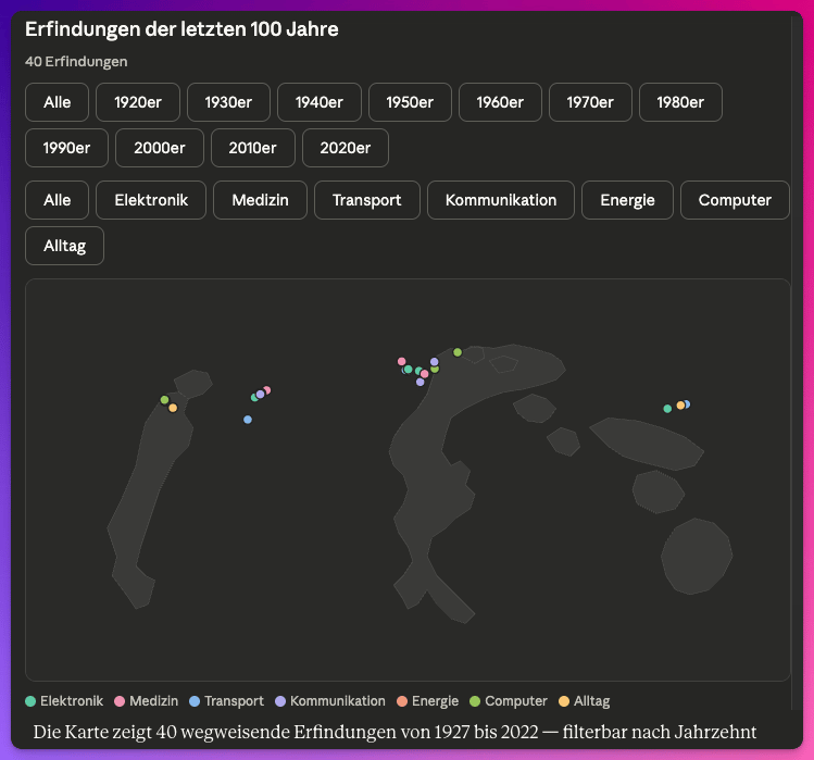 Manche der interaktiven Elemente sind brillant, manche crashen, manchmal hilft ein Refresh. Aber das ist der Punkt: Claude ist wie der ambitionierte Lehrer, der auch mal scheitert oder daneben liegt, dafür aber keine Grenzen kennt.