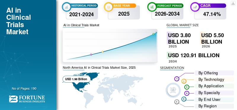 Der Markt für AI in klinischen Studien ist heute noch relativ klein (3,8 Milliarden USD in 2025), soll aber bis 2034 auf rund 121 Milliarden USD explodieren. Das ist eine extrem hohe jährlichen Wachstumsrate!