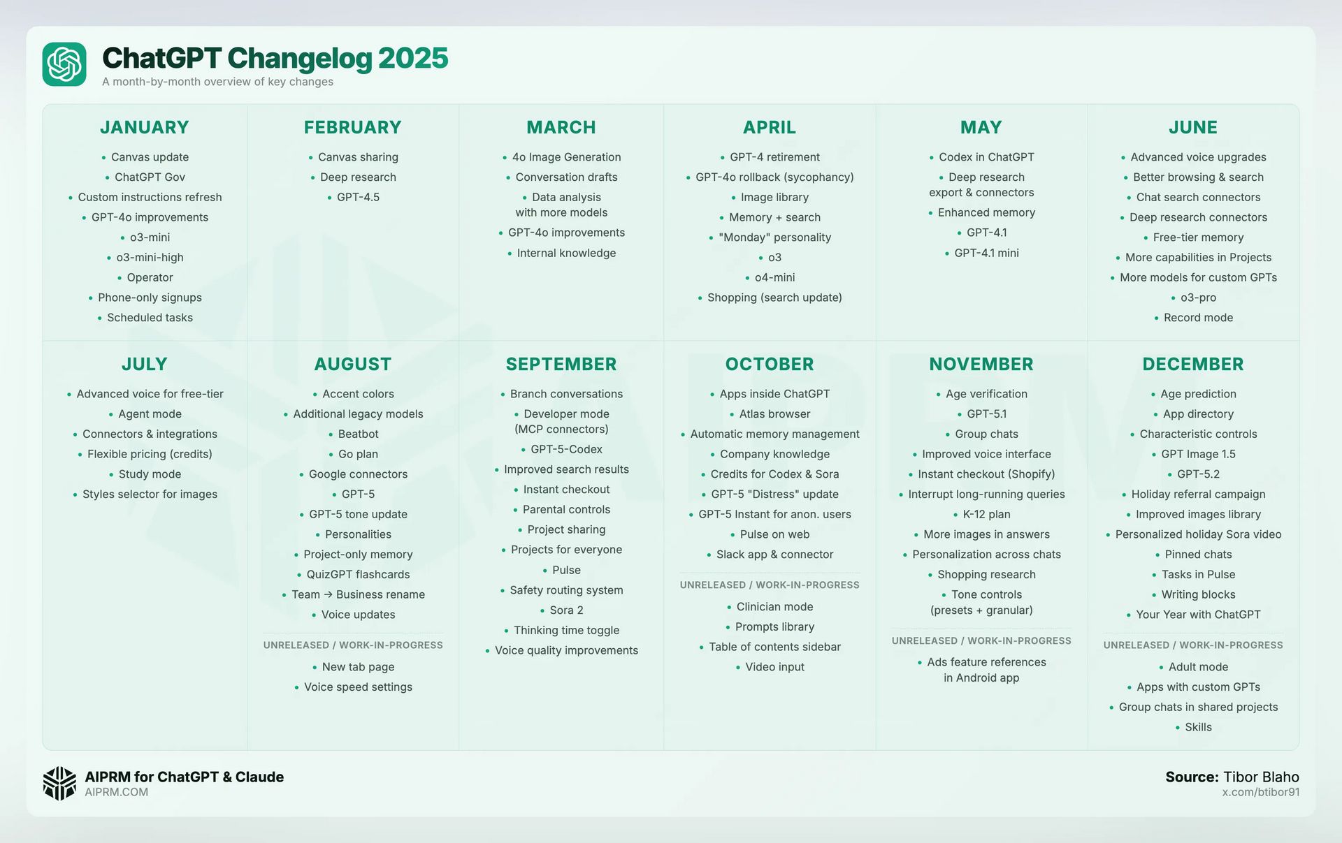 Und OpenAI? ChatGPT muss dich erst überzeugen, deinen Workflow zu verlassen. Sie haben GPT-5.* gebracht - solide. Neue Images, auch nice. Ein paar Apps. Und mit Sora ein starkes, aber auch stark eingeschränktes Video-Modell mit AI-Slop-Social-Network.