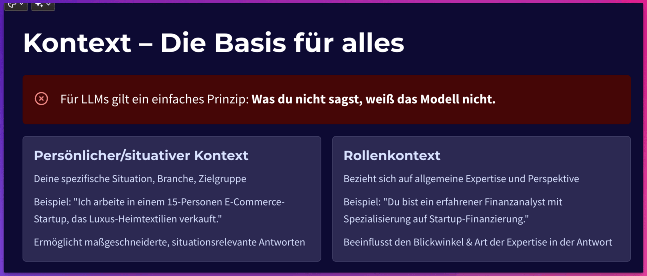 Wir haben das Thema schon in einer der ersten Folien in unserem Prompting Einsteiger-Training - und sagen immer, dass es eine der wichtigsten Slides ist:
