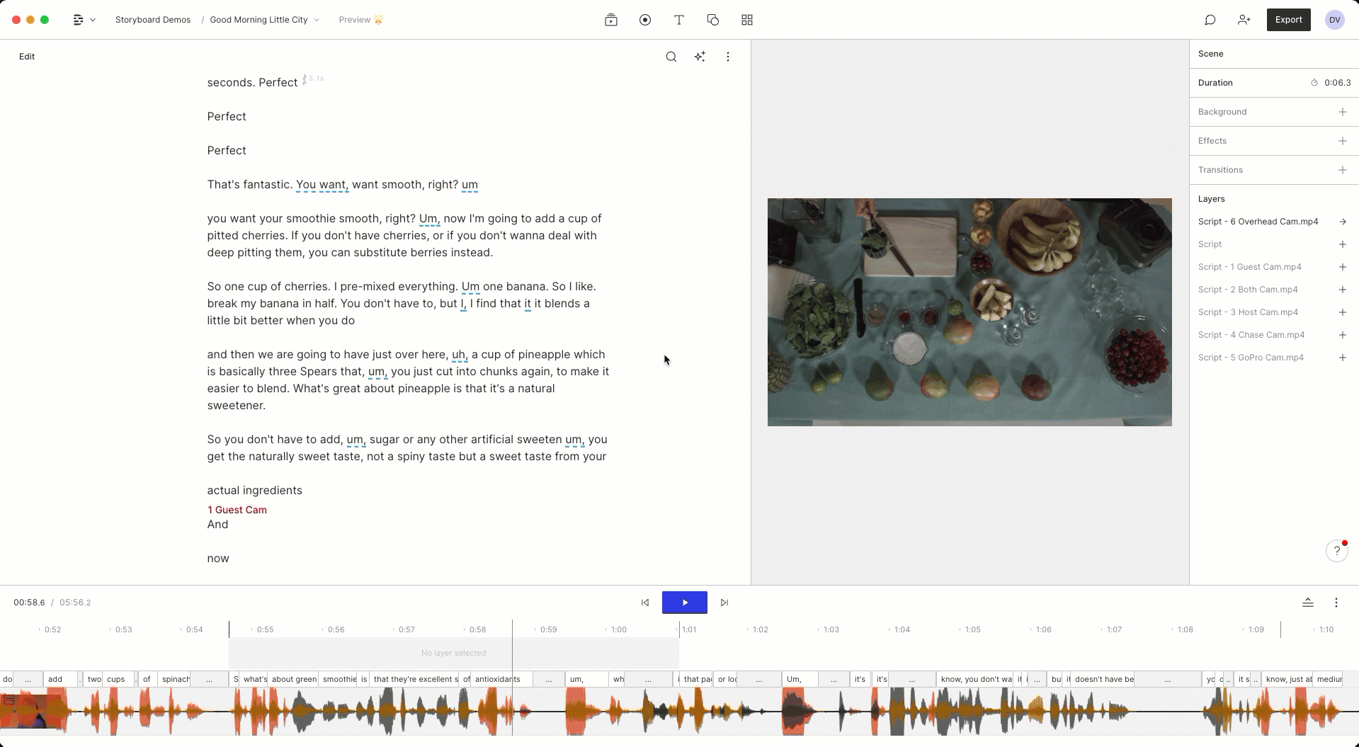 Echt wahr - und funktioniert sogar auf Deutsch (und 22 anderen Sprachen)! Einige Beispiele: Descript's "Szenen" ermöglichen es, Videos intuitiv wie eine Diashow zu erstellen, und die Transkription-basierte Editor-Funktion revolutionierte bereits das Podcast-Bearbeiten.