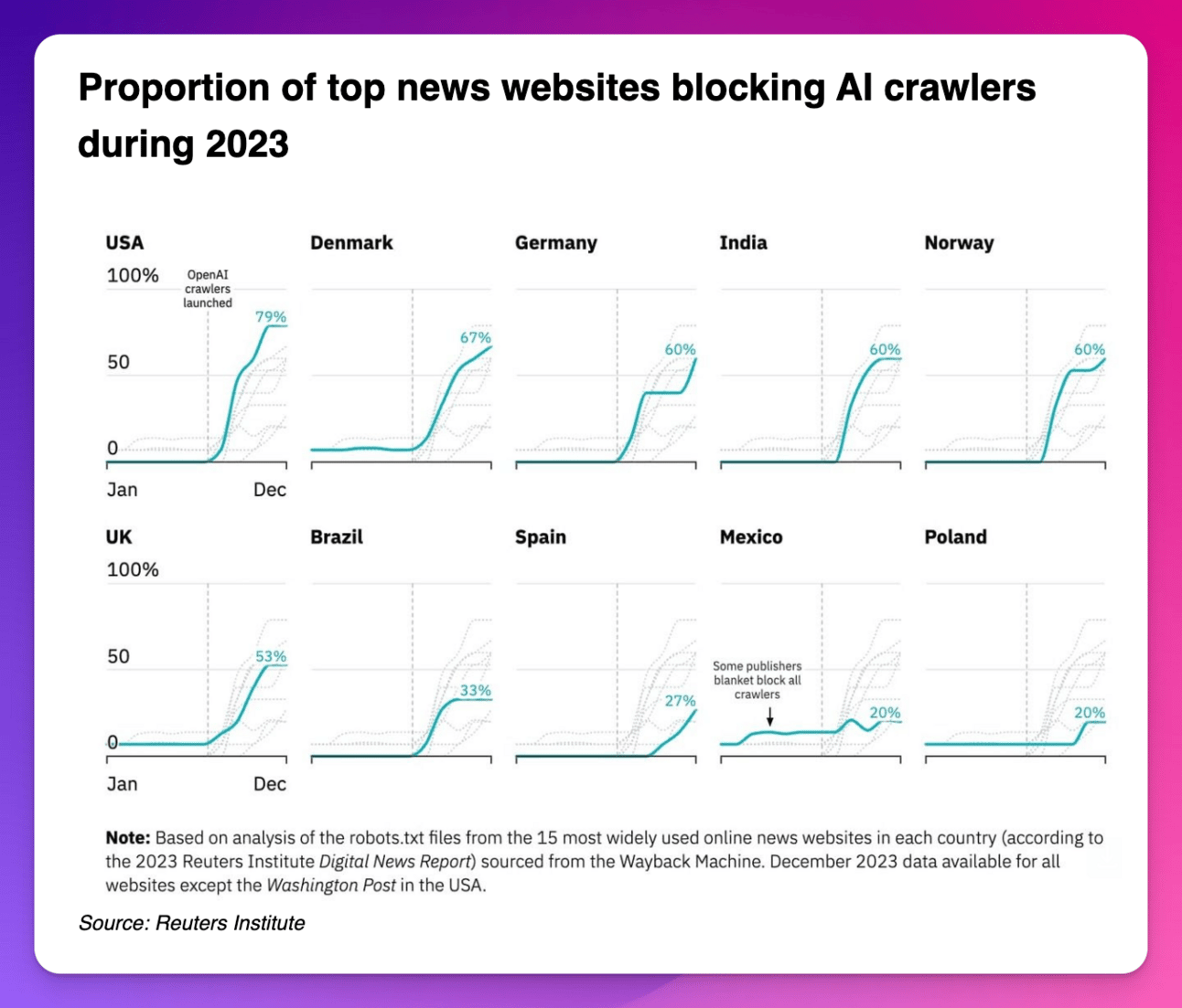 Apropos AI-Crawler: Viele große News-Seiten haben diese bereits ausgesperrt, kurz nachdem der OpenAI Crawler gelauncht wurde …