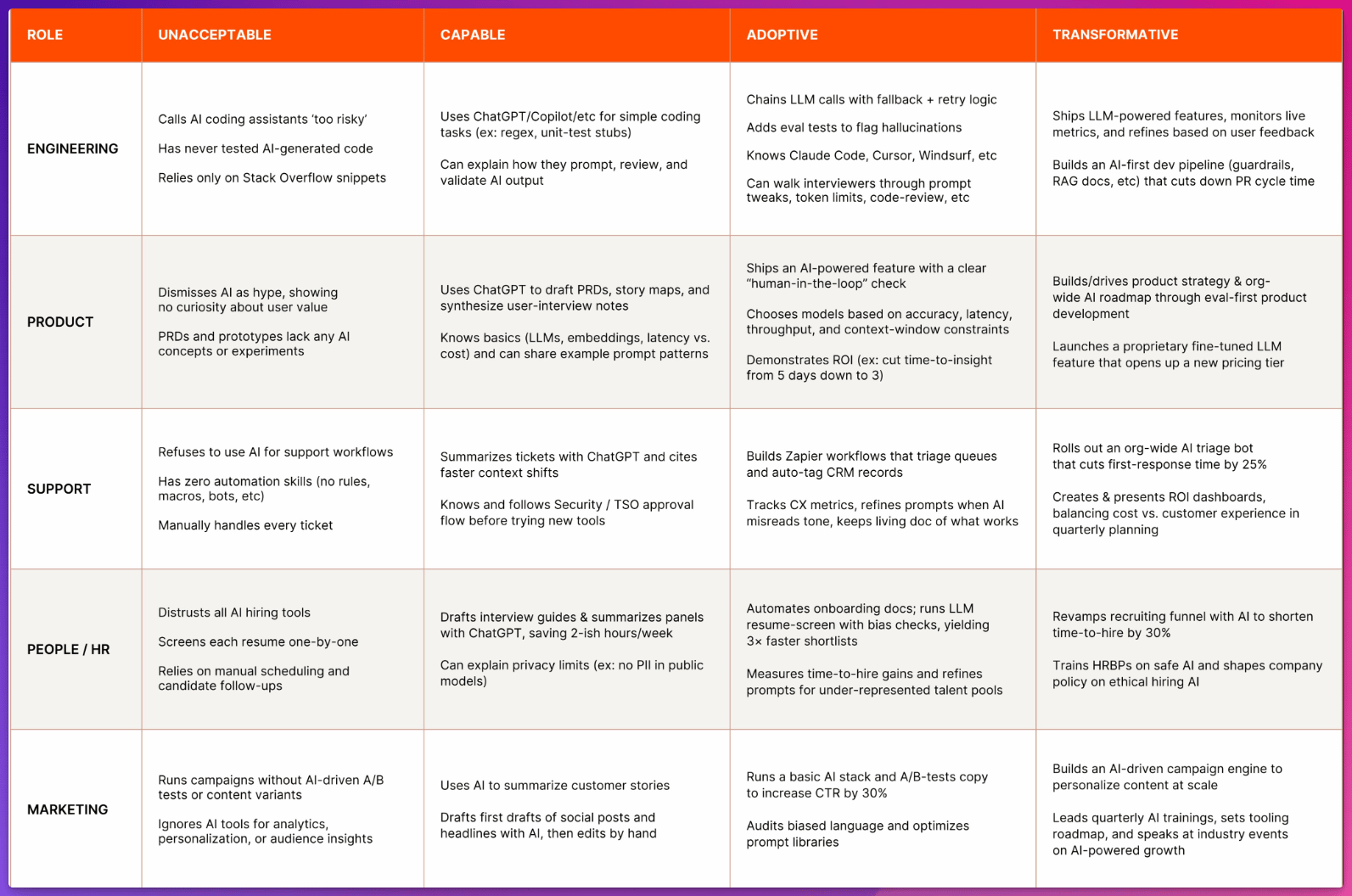 Zapier z.B. verlangt von 100% der Mitarbeiter, dass sie “AI-Fluent” sind - und teilt den Grad bei Mitarbeitern entsprechend ein: