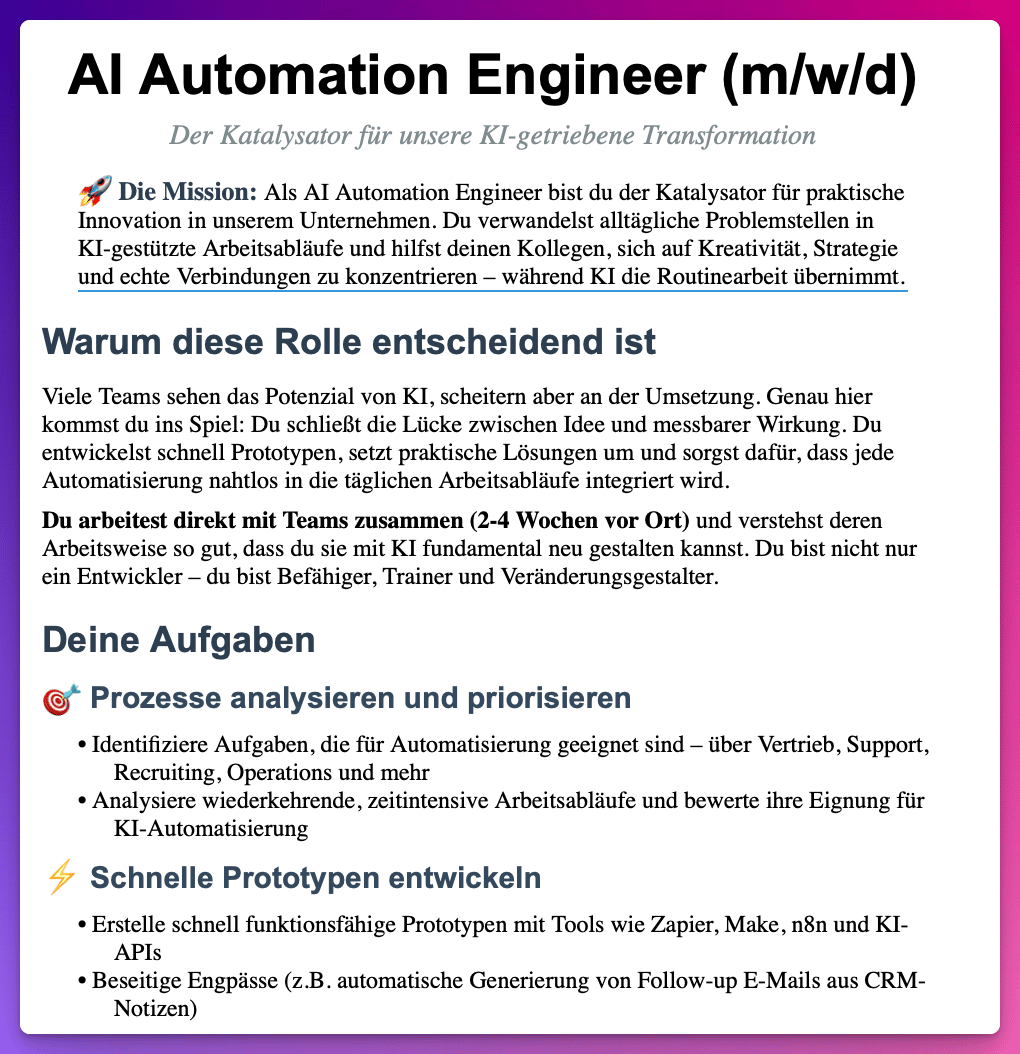 Ausschnitt Stellenbeschreibung AI Automation Engineer