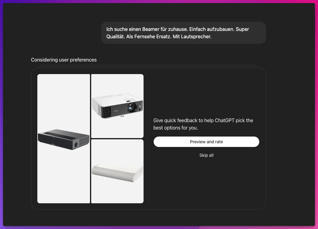 ChatGPT will somit zu deinem Go-To in Sachen Online Shopping werden. Und wahrscheinlich klappt das auch.