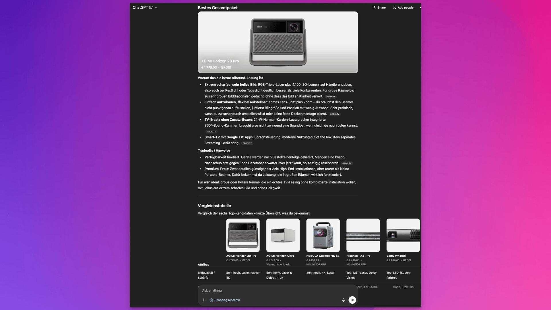Es führt neben Deep Research für tieferen Wissensaufbau nun auch Shopping Research ein. Damit will ChatGPT noch mehr zur rechten Hand all deiner Kaufentscheidungen werden.