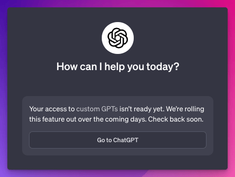 Wahrscheinlich geht es dir wie uns und du hast noch keinen Zugang zu den neuen Assistenten, den Custom GPTs, in ChatGPT Plus. Buuuuuhhhh!