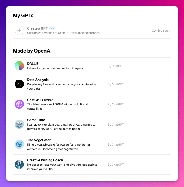 GPTs können einfach per Textanweisungen selbst gebaut und über den kommenden Marketplace sogar verkauft werden.