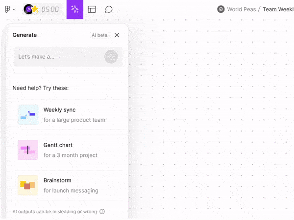 Du kannst dir durch einfaches Beschreiben z.Β B. deines Meetings ganze FigJam Templates erstellen lassen. Sehr individuell und einfach!